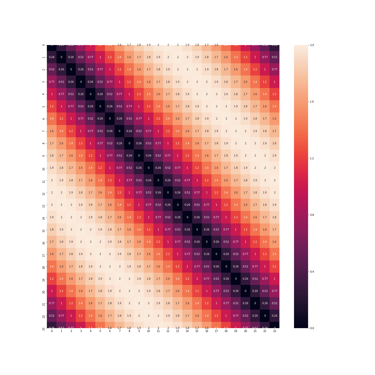 Si on conserve ce format, on va donc avoir la distance entre 23h et 0h qui va valoir 23 fois la distance entre 0h et 1h. Or nous savons très bien que ce n’est pas le cas: au contraire, le comportement d’un individu à 23h, à minuit ou à 1h du matin est certainement très similaire.