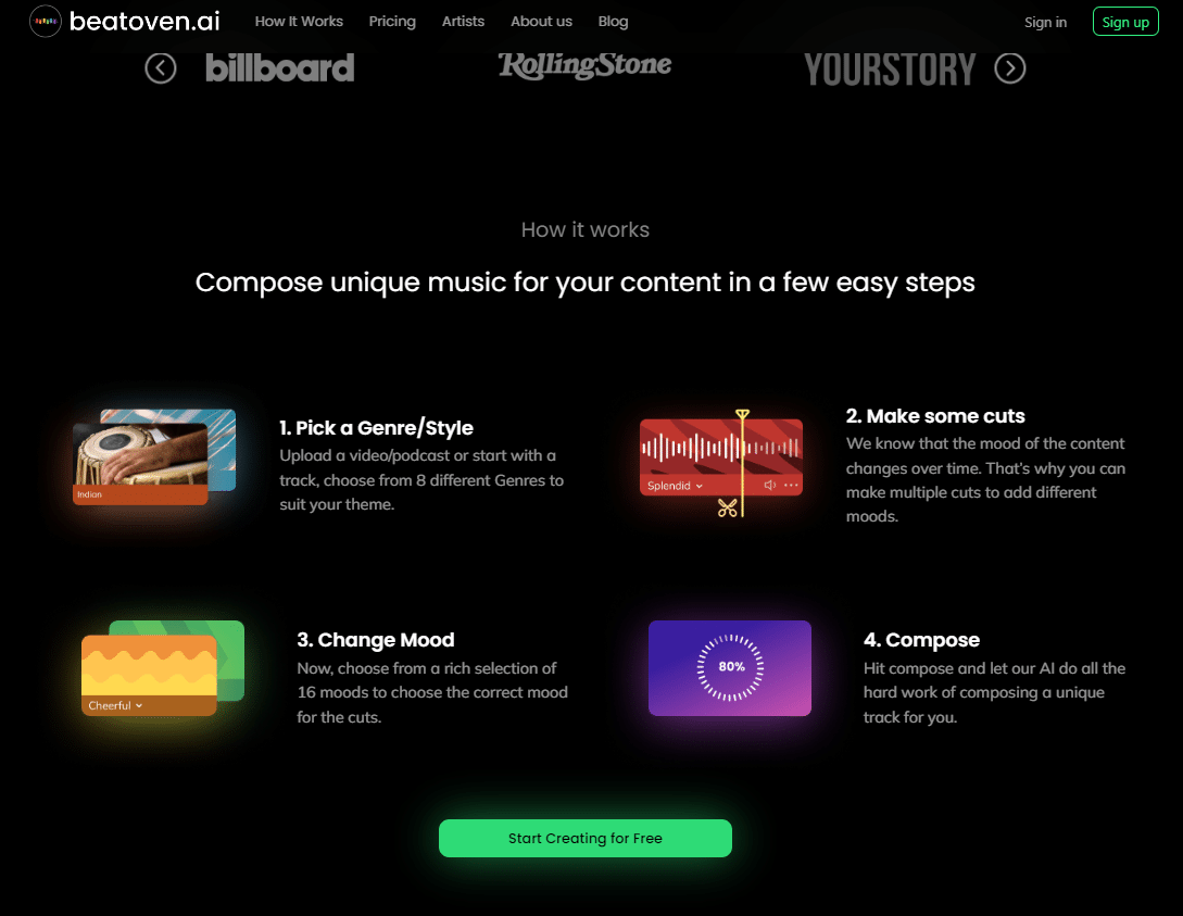 Le générateur de musique Beatoven.ai permet de composer des musiques uniques pour vos vidéos et podcasts, basées sur l’ambiance et l’humeur souhaitées.