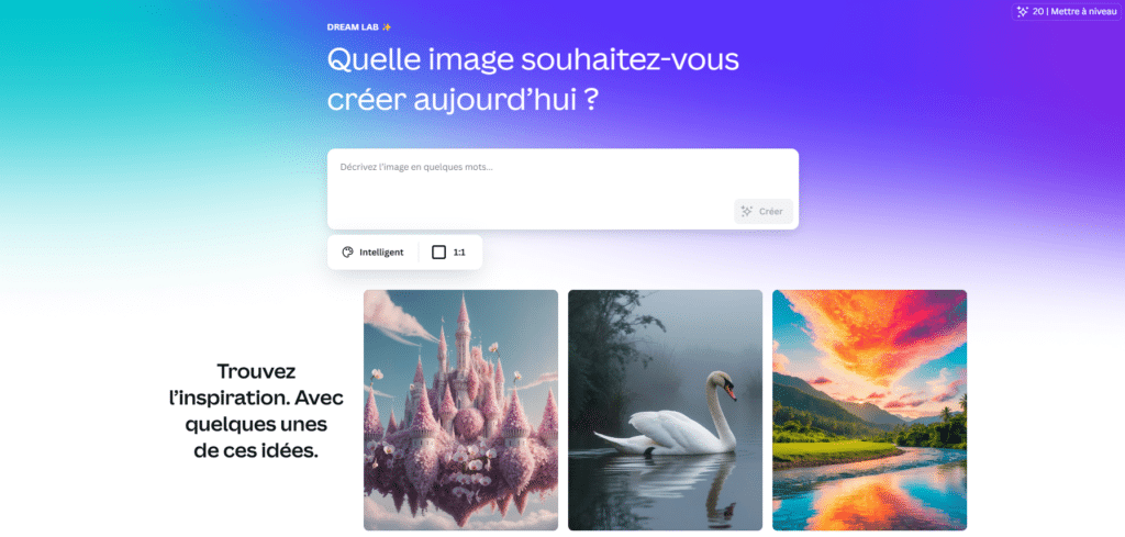 La version gratuite de Canva permet aux utilisateurs de tester Dream Lab jusqu’à 20 créations d’images gratuites. Pour ceux utilisant des comptes Pro, Équipe, ou Éducation, cette limite est considérablement élargie, avec 500 créations mensuelles renouvelées chaque premier du mois.