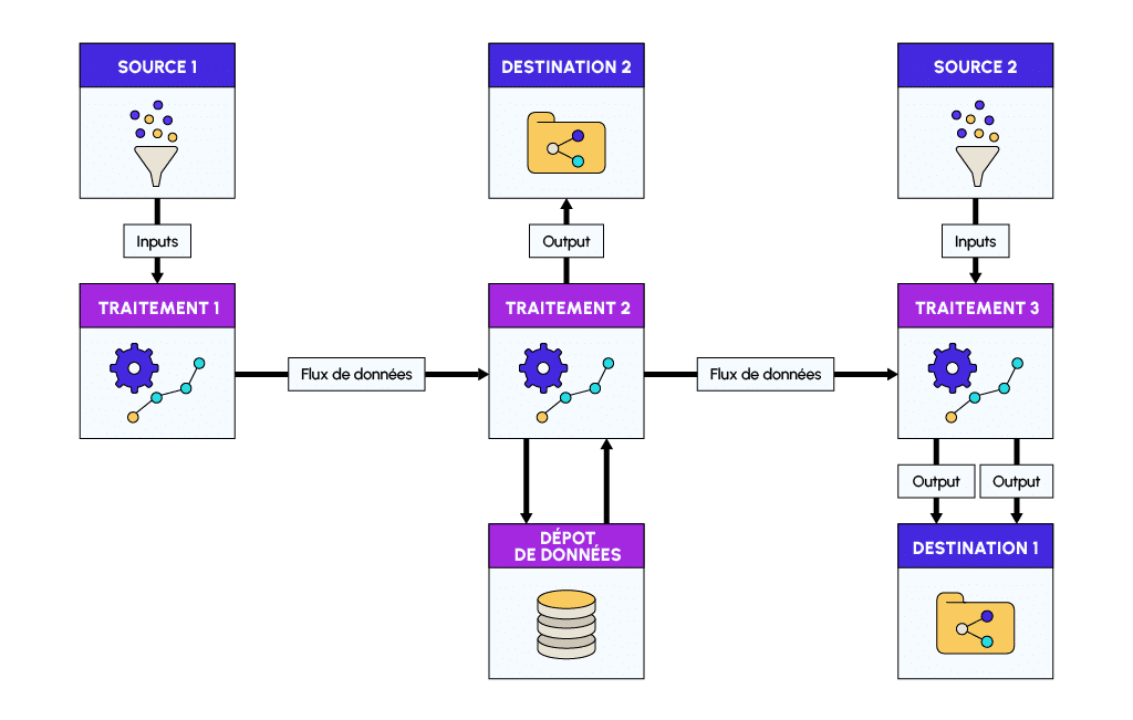 | Restitution | Lors de la restitution, les données retraitées sont distribuées aux différents destinataires sous forme de : rapports, statistiques, reporting, tableaux de bord, etc. Cette phase est aussi appelée DataViz (Data visualization, Data visualisation). |