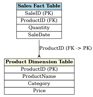 Zum Beispiel kann eine Faktentabelle der Verkäufe (sales fact table) eine Spalte „ProductID“ haben, die als Fremdschlüssel auf den Primärschlüssel der Produkttabelle verweist. Diese Beziehungen ermöglichen es, Daten aus verschiedenen Tabellen zu kombinieren, um umfassende und detaillierte Analysen zu erhalten.