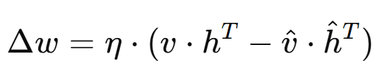 Die Gewichte der Verbindungen zwischen den Neuronen werden aktualisiert, indem der Rekonstruktionsfehler minimiert wird. Die Gleichung für die Gewichtsaktualisierung lautet: