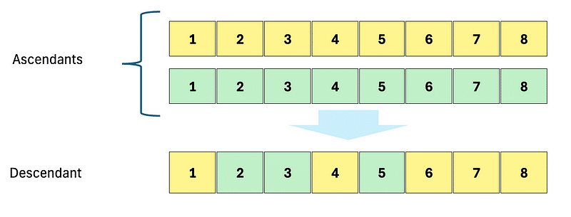 In some models, the suggestion is to combine genomes segment by segment (by halves or gene pairs). For my approach, I favored a method more akin to nature, handling it gene by gene.