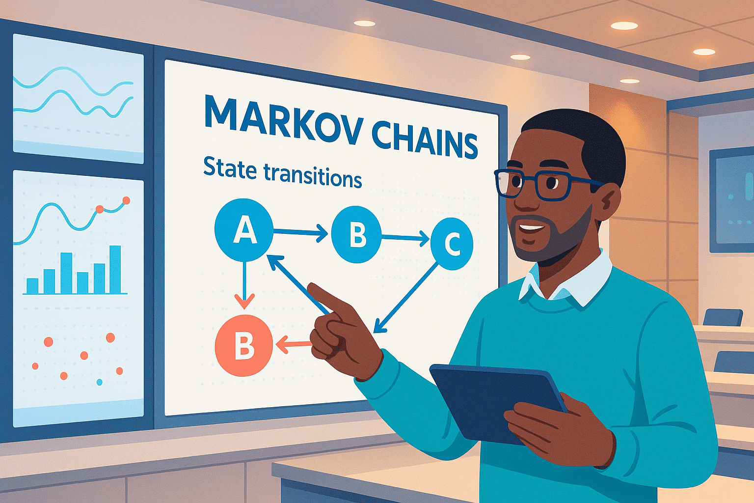 In industry, Markov chains model technical systems with states such as “operational,” “failed,” or “under maintenance.” This allows for equipment availability calculations, preventive maintenance planning, and repair cost optimization.