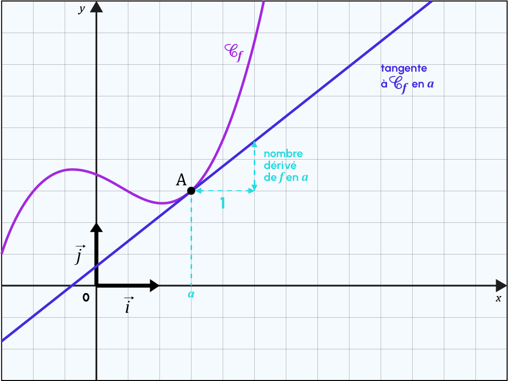 Simply put, the sign of the derivative indicates the variations of the function f. It represents the tangent to the function. And the derivative itself represents the directing coefficient of the tangent to f at the point.
