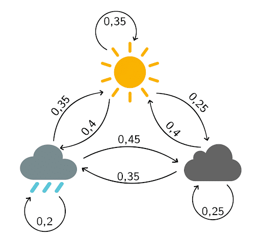 - To make things even simpler, you assume that there are only three possible types of weather: sunny, cloudy or rainy.