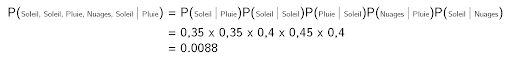 Let’s calculate the probability that the weather over the next five days will be “sunny, sunny, rainy, cloudy, sunny”.