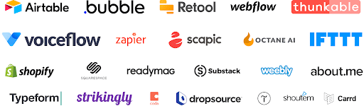 There are a considerable number of No Code tools available for every purpose, whether it’s website creation, mobile applications, chatbots, API implementation or database management. It’s difficult to make an exhaustive list of all these tools, but some of the most popular include: Bubble, Airtable, PowerApps, Glide, Zapier, Adalo, WordPress…