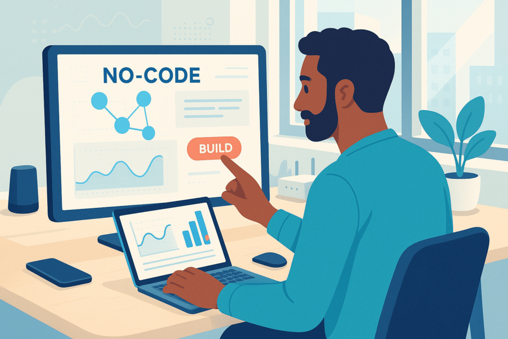 Se trata de un enfoque de creación digital que permite construir sitios, aplicaciones o incluso automatizaciones, sin aprender a escribir una sola línea de código. Gracias a interfaces visuales, bloques predefinidos y herramientas intuitivas, te vuelves autónomo, sin necesidad de un desarrollador.