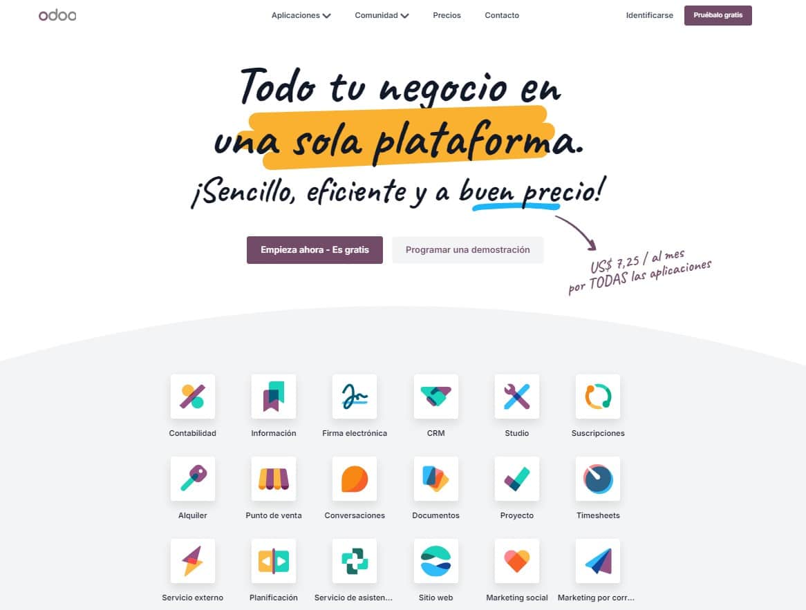 Fundado en 2004, Odoo es un sistema de planificación de recursos open source. Totalmente integrado y personalizable, permite responder a todas las necesidades de las empresas. Gracias a más de 40 000 aplicaciones, gestiona la relación con el cliente (CRM), las ventas, la gestión de proyectos, la gestión de inventarios, contabilidad, recursos humanos, marketing, etc. Y todo eso, a través de una única solución de software. Para aprovecharlo, solo es necesario activar las aplicaciones según tus necesidades.