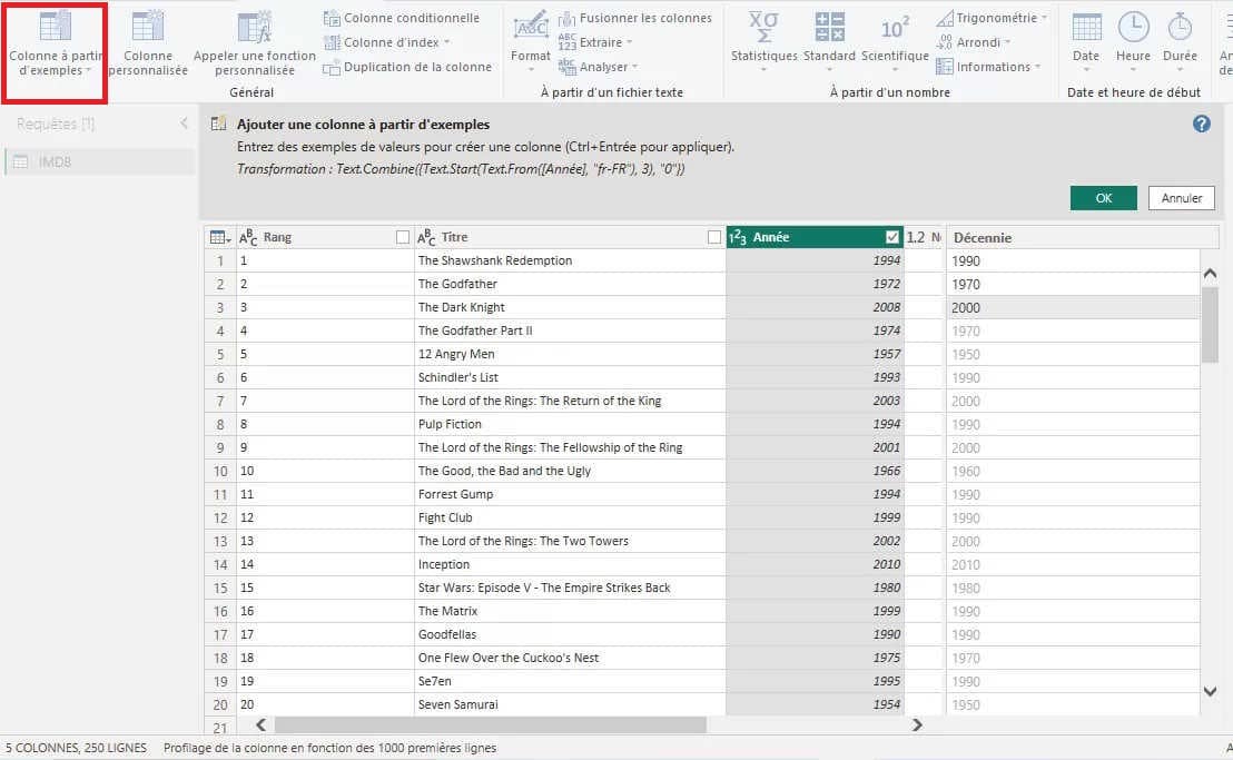 - cliquez sur « Ajouter Colonne », puis sur « Colonne à partir d’exemple » ;