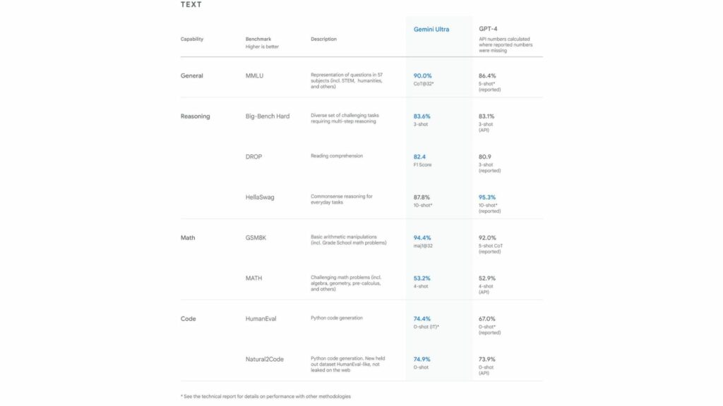 Considéré comme extrêmement performant, Gemini est meilleur que GPT 4 sur 30 des 32 référentiels académiques, selon un comparatif de Google. À l’annonce de sa disponibilité, Google à dévoilé 3 versions de Gemini :