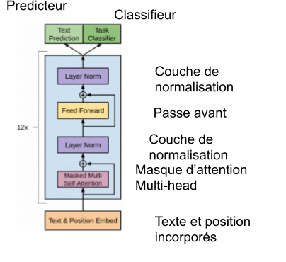 On peut résumer l’architecture transformateur de GPT par le schéma suivant :