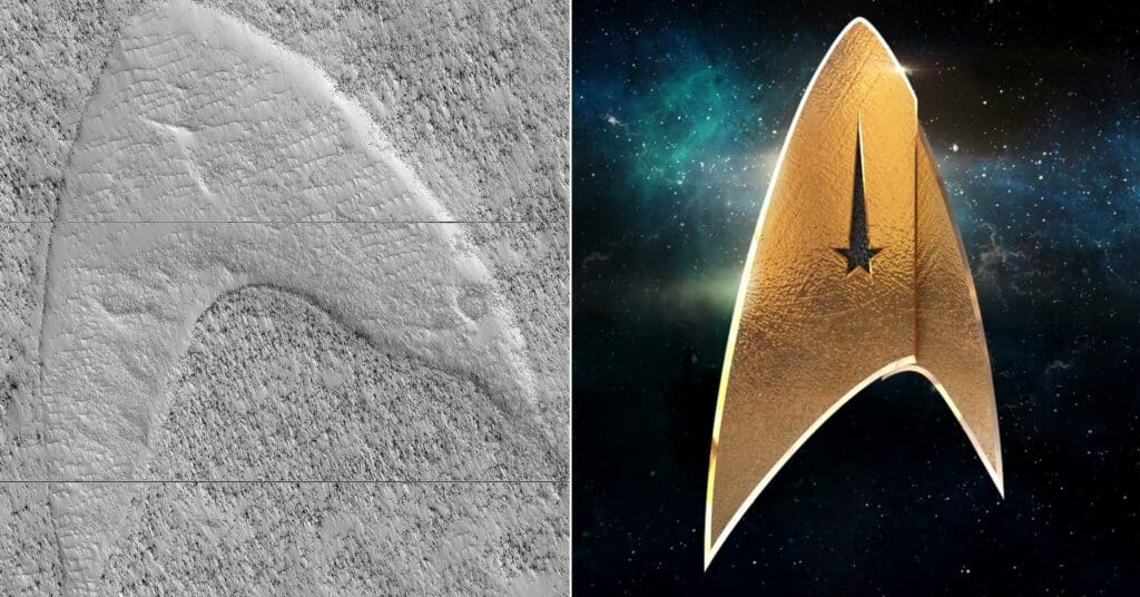 Chose notable, depuis dix ans, les scientifiques qui gèrent le satellite ont pu photographier toutes sortes de clichés étonnants comme, par exemple, une autre formation géologique qui ressemble étrangement à l’insigne de la force Starfleet, chargée d’explorer l’espace dans la série télévisée Star Trek.
