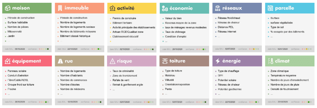 Ce traitement des données permet d’associer à chaque adresse une entité (parcelle, bâtiment, etc.) et à chaque entité des attributs (hauteur, surface vitrée, présence d’un jardin, d’une piscine, etc.).
