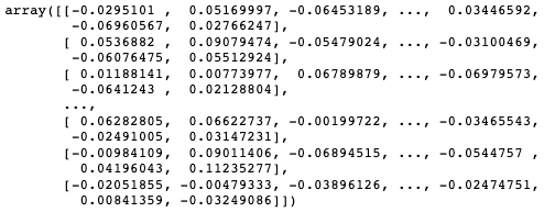 Finalement, une matrice d’embeddings n’est rien d’autre qu’une matrice contenant une grande variété de mots et leurs embeddings correspondants. Voici ci-dessous, un exemple de matrice d’embeddings anglais :