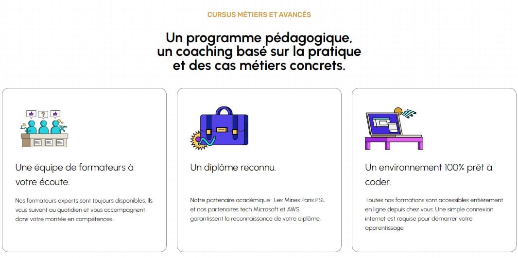 Tous nos programmes se complètent intégralement en ligne, et sont éligibles au Compte Personnel de Formation pour le financement. Découvrez vite DataScientest !