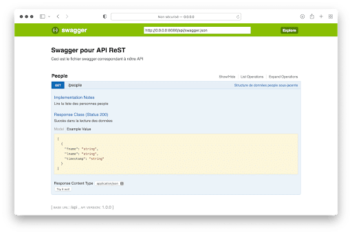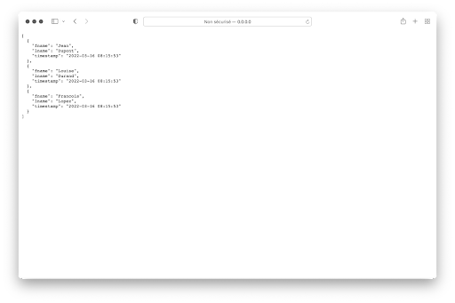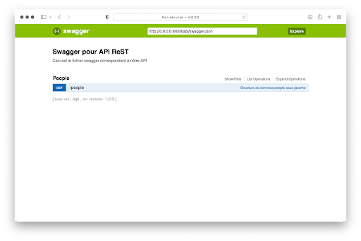 ce qui donne le résultat suivant en saisissant comme adresse http://0.0.0.0:8080/api/people dans la barre du navigateur :