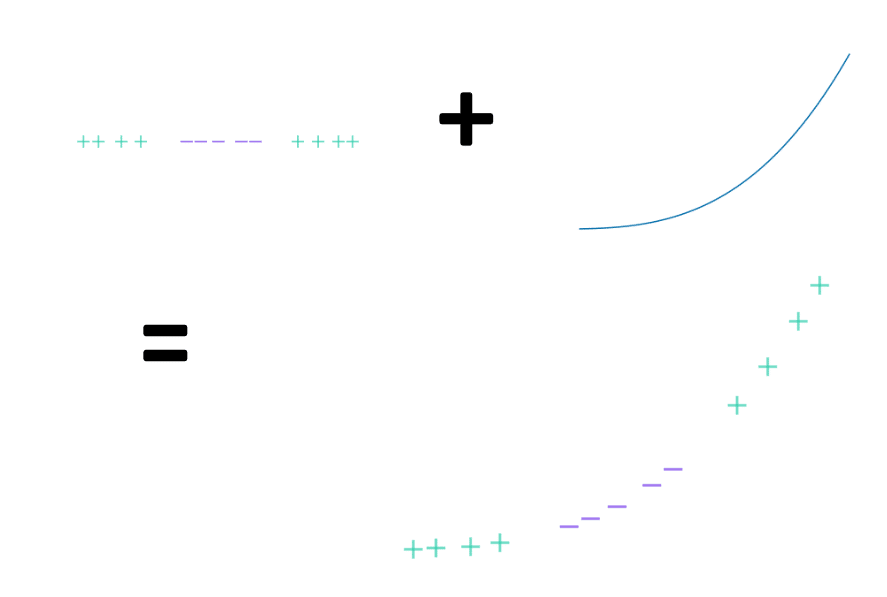 Inutile de vous expliquer pourquoi aucune droite ne peut séparer les « + » et les « – » dans cette configuration particulière.