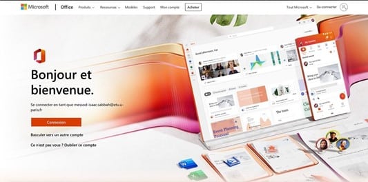 Vous cliquez ensuite sur l’icône de connexion pour vous connecter à votre compte Microsoft ;