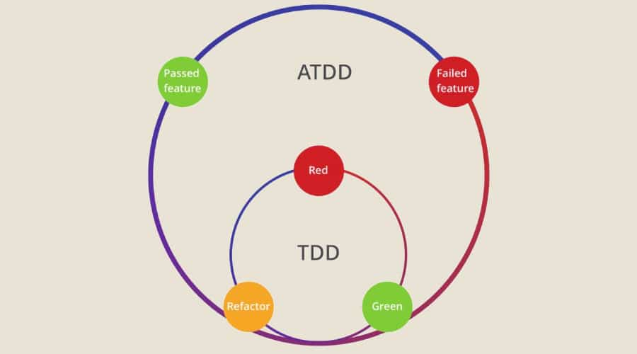 - L’acceptance Test Driven Development (ou ATDD) : c’est une méthode complémentaire au TDD. Dans ce cas, les développeurs s’attachent surtout à vérifier la cohérence d’un scénario applicatif avec les objectifs visés. Cette approche est centrée sur les tests d’application fonctionnelle.