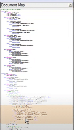 Pour des scripts longs, la fonction Document map vous permet de visualiser rapidement l’ensemble de votre code source sous forme de mini-carte en marge de votre éditeur. Cela vous donne un aperçu global de votre code et vous permet de vous déplacer rapidement dans des sections spécifiques en cliquant simplement sur la carte.